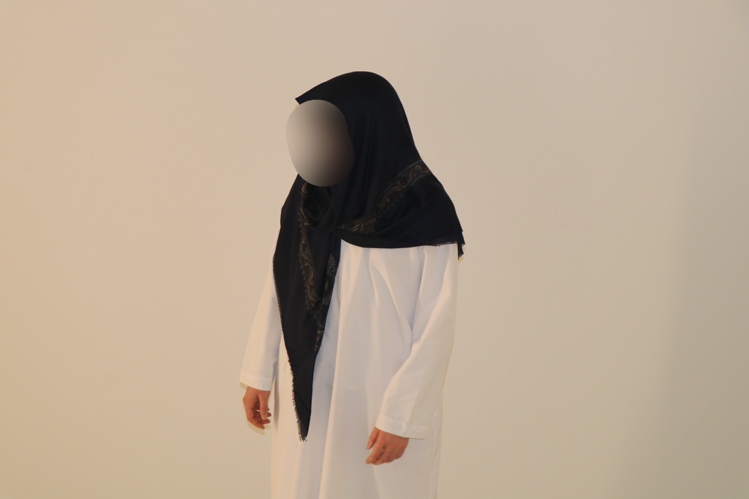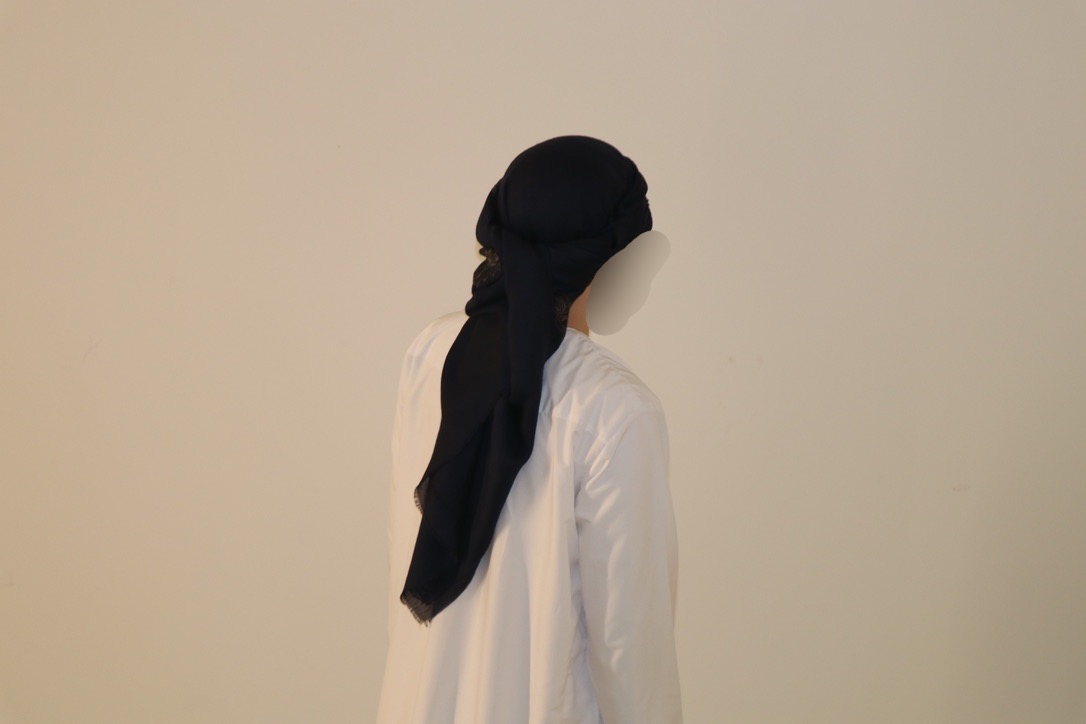 Full-cut Emirati silhouette in deep navy suiting.